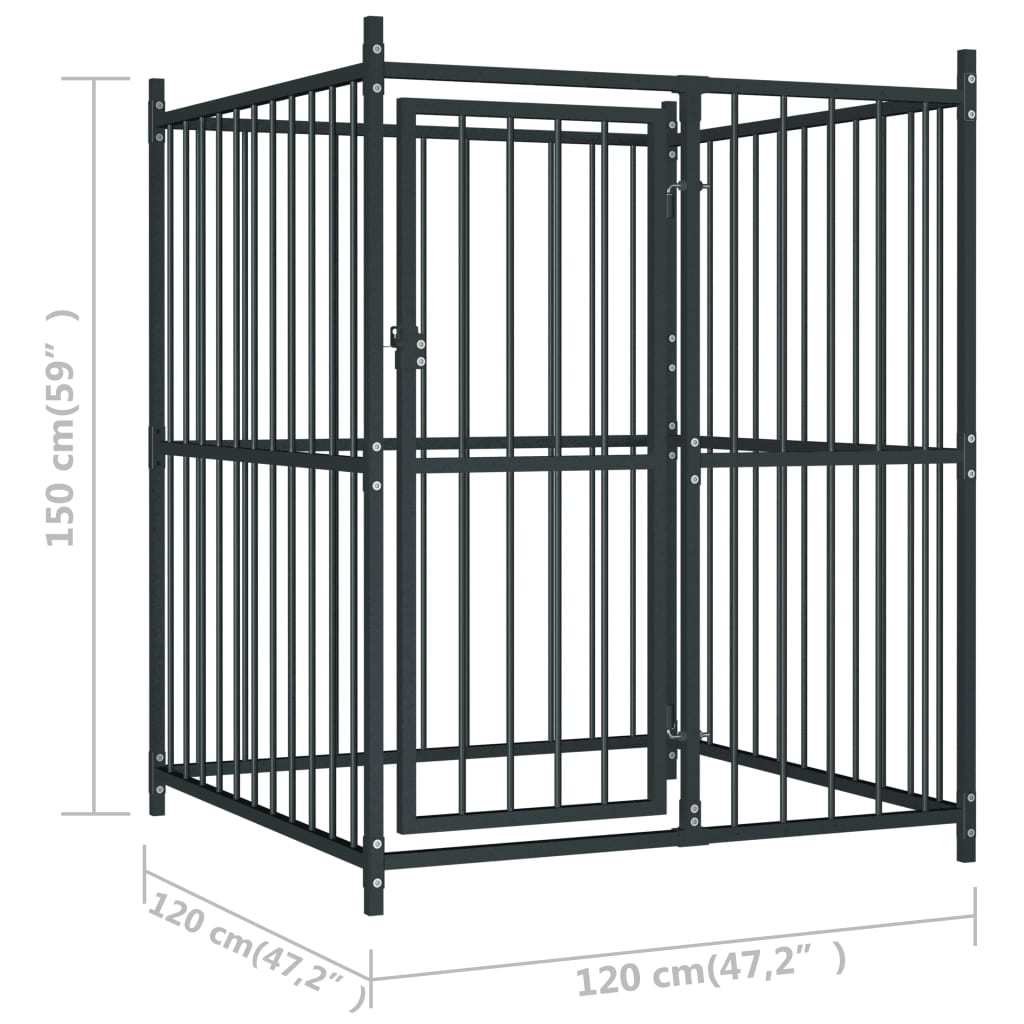 Our dog kennel is easy to assemble.Color: BlackMaterial: Steel; fabric (100% polyethylene)Overall dimensions: 47.2" x 47.2" x 59" (L x W x H)Inner dimensions: 45.2" x 45.2" x 59" (L x W x H)Metal bar size: 1" x 1" (L x W)Ground surface area:15.5ft²Lockable latch systemSuitable for dogsAssembly required: Yes