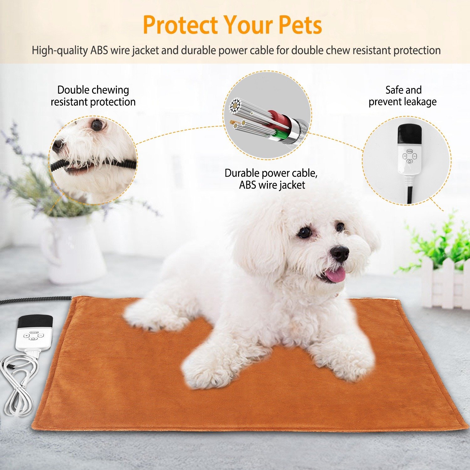 *Chewing-Resistant Tube*:Adding a chewing-resistant tube around the UL-certified cord close to pad,can better protect your pets from getting electric shock,perfect for those naughty pets who love to bite. Note:Indoor use only.
