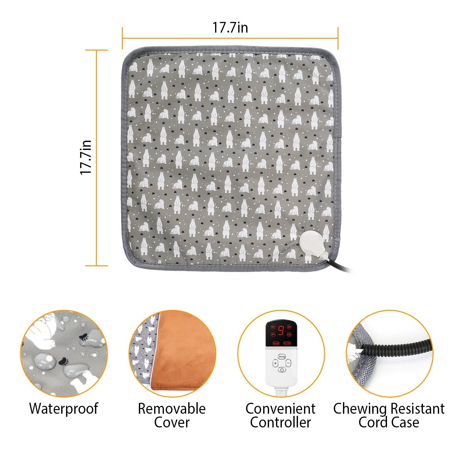 *Removable & Washable Cover*:Made of super soft plush,skin-friendly cover gives your pet comfort and warmth. When your pet urinate or drip on it,you just need to wash the cover as it can be easily removed and machine washed,and wipe pad clean with a damp cloth as the heating pad is waterproof.